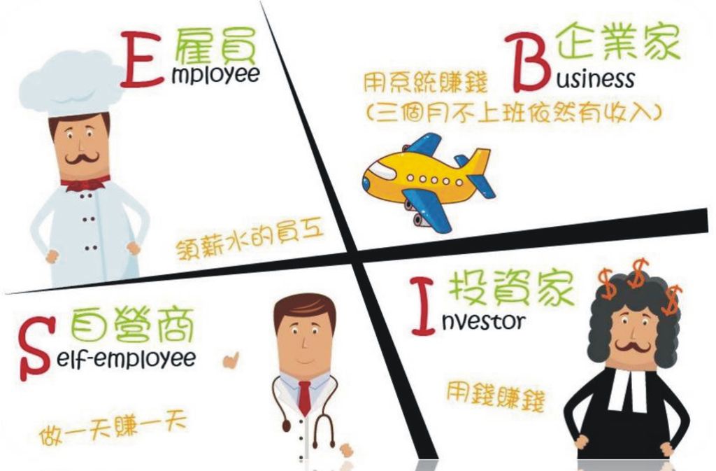 - 左上Employee(受僱者、僱員):為他人工作而賺取薪金,追求安全、穩定,畏懼風險的一群