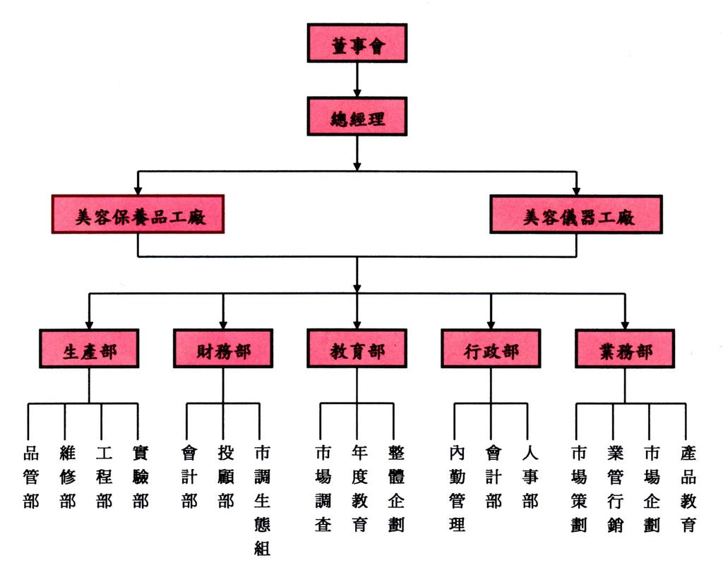 公司最上面三位老闆,老闆下來有總經理,總經理下來有副總經理,接著經理ˋ主任ˋ副理ˋ基層員工
